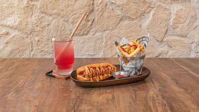 Steak 120g ou smash, sauce burger, cheddar, bacon grillé, roquette, oignons confits. Un mélange puissant et gourmand