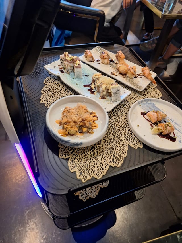 9/10Great fresh sushi with some unusual Maki; all the most famous chinese dishes, and now also Churrascharia, with the famous Brazilian big spits cooked on the grill, with ribs, sausage, bacon, chicken. All you can eat (Churrasco included) at 21.90. And here you can meet Emiglio, the robot waiter. Really funny !