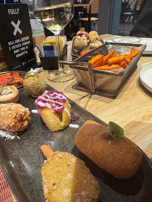 - Hamburger, insalata lollo, composta di peperoni, scamorza affumicata, melanzana croccante e salsa remoulade