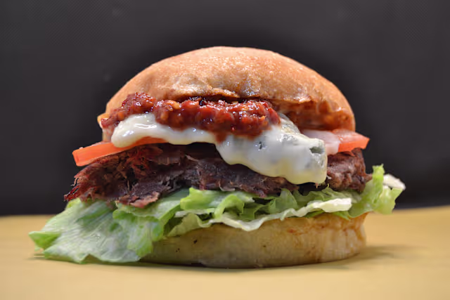 - Hamburger smash, bacon, cheddar, mayo & ketchup