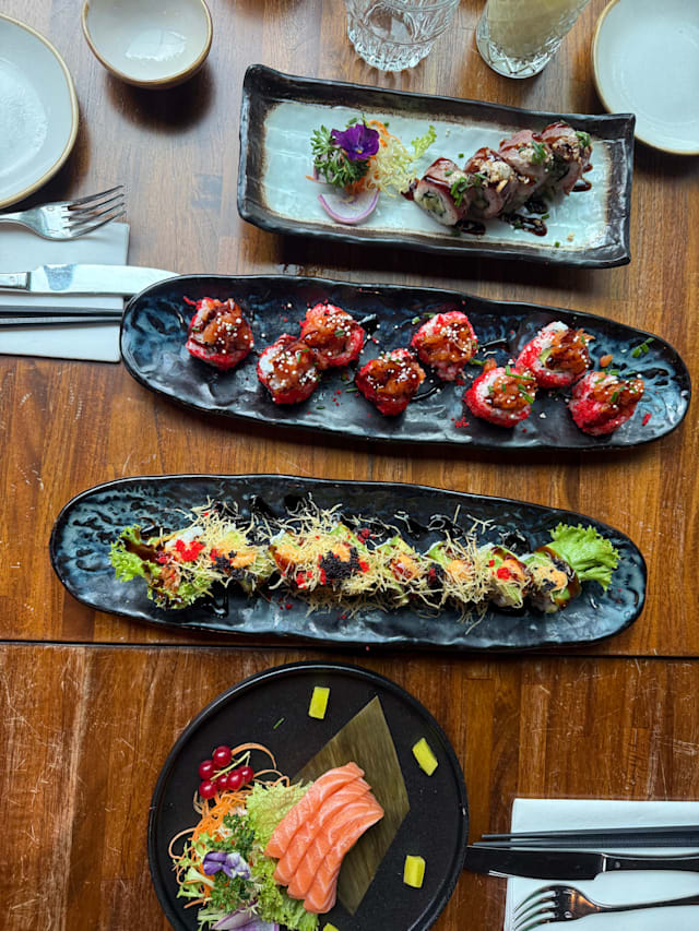 10/10Beautiful location, with a view of the water and a water feature. Nice vibe inside and very friendly staff as well. We really enjoyed our sushi and cocktails.