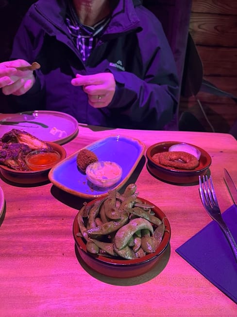 10/10Ambience is really cool and the food amazing. We had the edamame beans, calamari, bitterballen, chicken wings and ribs, all were great.