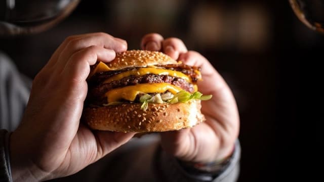 Cheeseburger : burger, cheddar, salade, oignons caramélisés, sauce maison