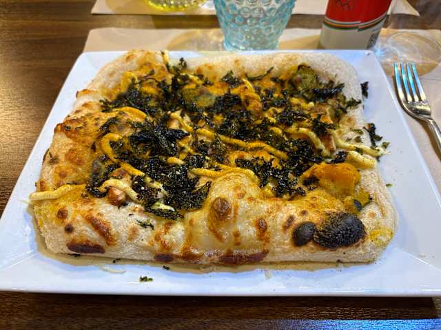 10/10First time there, the guy was extremely kind, the sushi was so interesting and amazing, I would have had dozens of it, the chips were so yummy, I finished the whole bowl by myself. The pizza was so loaded I couldn't finish it. I also bought some taralli, really good stuff.