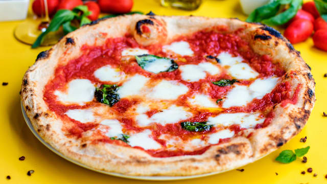 Pizza fritta e ripassata in forno con pomodoro, pecorino, nanami