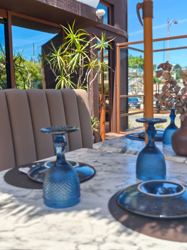 3.5/10The place was lovely, we had been for lunch and had a relaxed time. The restaurant was another level. There was a live fighting fish in a glass on the table. So cruel. The waiter stood looking over our shoulder all the time we were reading the menu. Much pressure! He kept saying I have fish I can bring you. It all sounded pretentious and the costings not transparent. Left alone we would have decided on something. We had a drink and starters, paid and left.