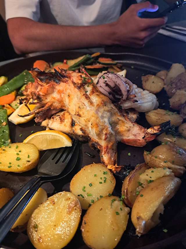 - Cortes de seleção do dia, camarão, lula, batata nova e legumes no forno
