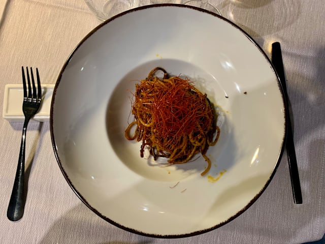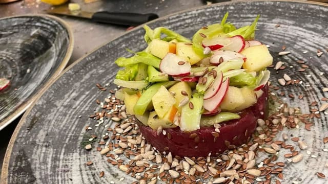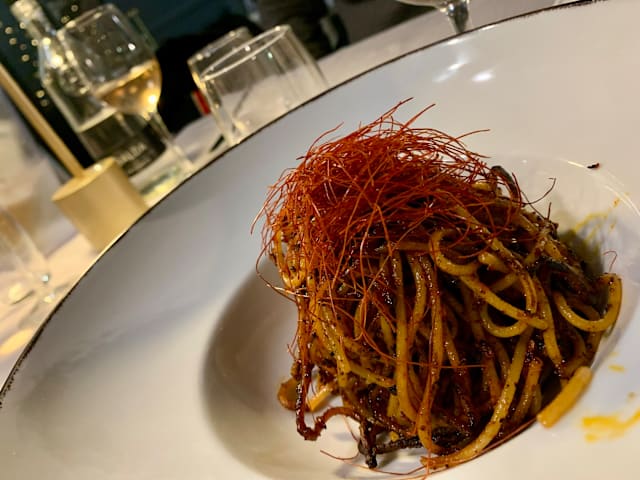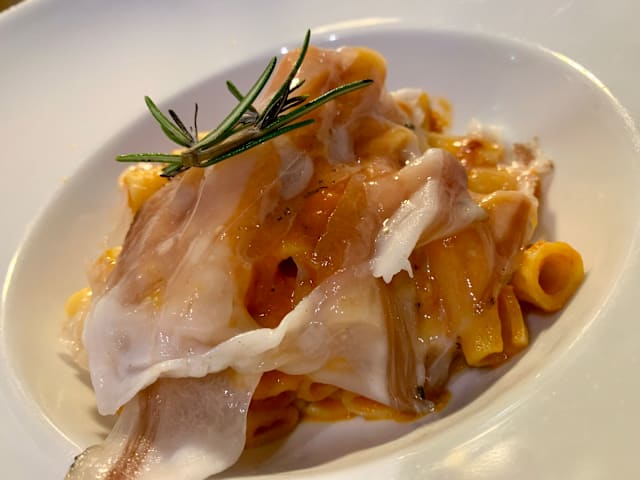 7.5/10It is a small restaurant with a nice ambience. The food quality is average. We order a pasta with “cime di rapa” that was completely insipid. Then I ordered a veal “medium rare” and it came “well cooked”…And the oven potatoes came so hot (like microwave hot) I burned my tongue. The coffee instead came cold (with coffee stains on the outside of the cups) The service is not professional… only one waiter had the knowledge of the dishes or the wines (very small list of wines) I won’t come back