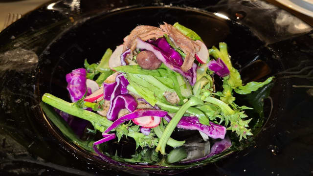 Crostone con burro di malga al finocchietto, sardine di castro e puntarelle