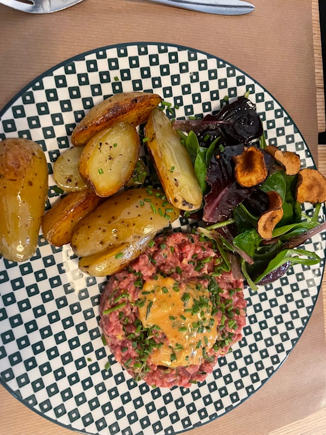 9.5/10Very welcoming and friendly staff. The service was excellent, no waiting around, but not rushing either. The food was delicious, we tried a variety of all 3 courses and we had a nice sparking rosé. We sat outside, there are just a couple of tables on the pavement. Good enough. All in all a lovely evening.