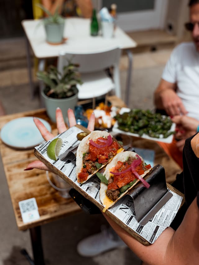 - Cerdo, pollo o vegetariano: guacamole, jalapenos, queso, salsa y crema agria a elección
