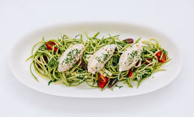 - Courgette, tyrokafteri, pistache, raisin, pomme verte et mix d'herbes
