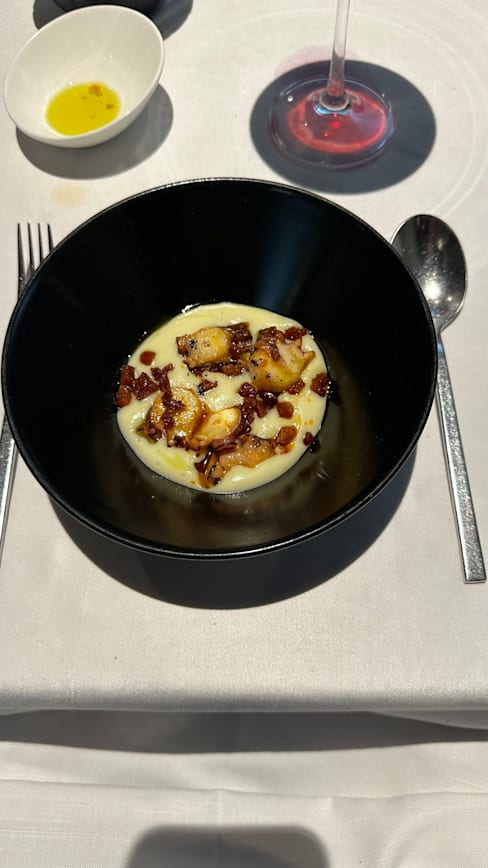10/10Epic….did the degustation menu which was 9 courses of chef choice…..a barbacoa taco, a fish tartare, foil gras sandwich, artichoke with cream corn, crab ravioli, seared tuna, iberico pork cheese course and dessert….one of the best meals since we last did San Sebastián area several years ago….highly recommended ….more casual than expected so we felt a bit overdressed