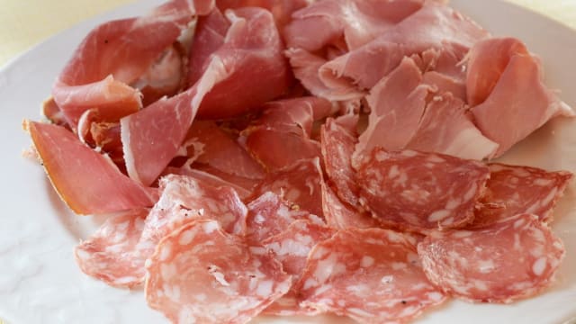1° portata: salamelle, culatello, costine di suino, pollo | 2° portata tagliata di picanha