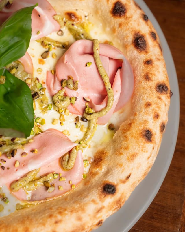 Fiordilatte, mortadella, salsa di pistacchio DOP, granella di pistacchio