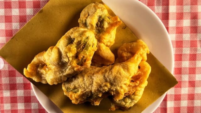 Fior di latte, pancetta, capperi, crciofo alla giudia al centro