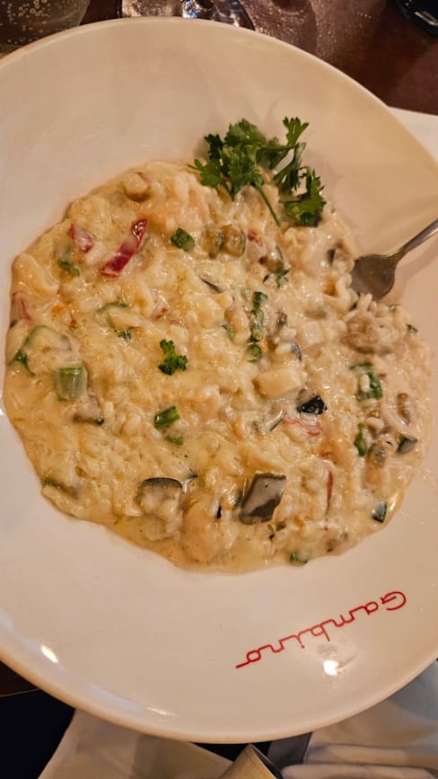 6.5/10The staff were lovely. I started with the carpaccio of bresaola with rocket and burrata. The quality was excellent, but the size of the portion was excessive. I continued with the risotto of asparagus. The rice was not overcooked, but I found the dish to be too salty. Again, the portion size was excessive. The price was fair, given the size of the portions. However, it really pained me to see how much food was wasted.