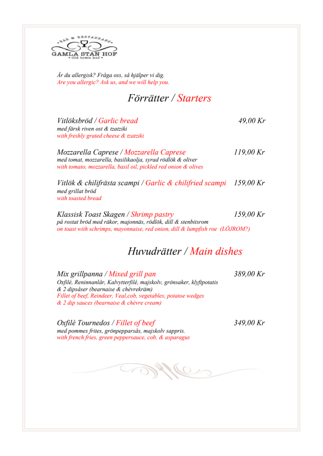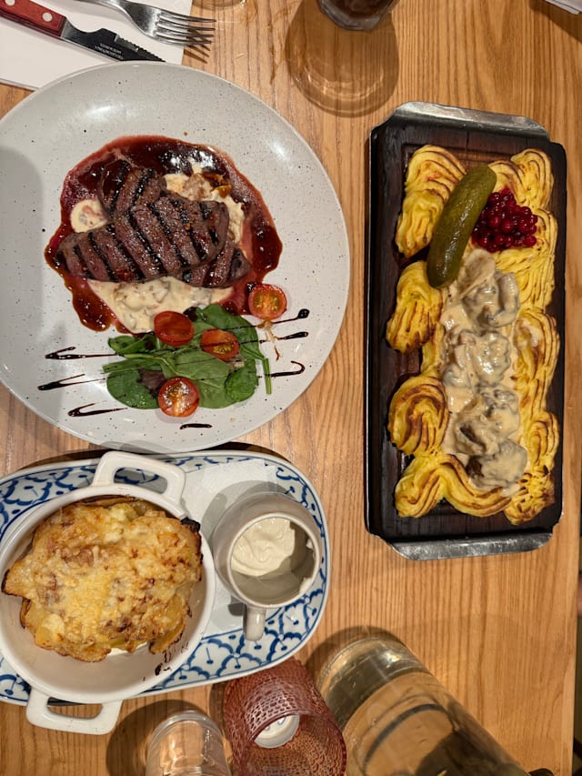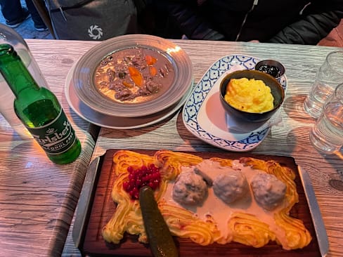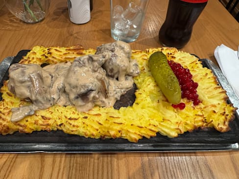 6.5/10A place with varied food, from traditional swedish stew (quite good), meatballs and raindeer steak, to pasta, burgers and salads. The food quality is ok and the waiter was nice, but nothing out of this world.