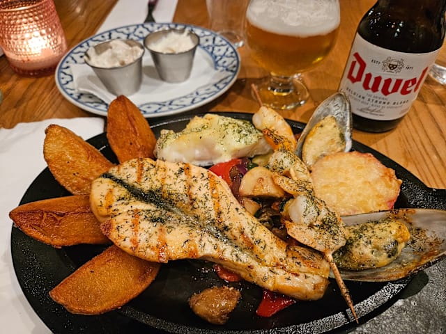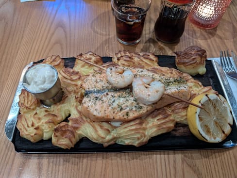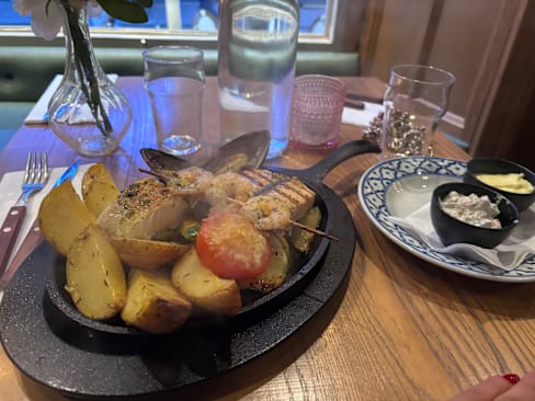 5/10I got a terrible diarrhoea right after eating … I had a fish and prawn mix grill, sure there was some non fresh ingredients but the staff were nice