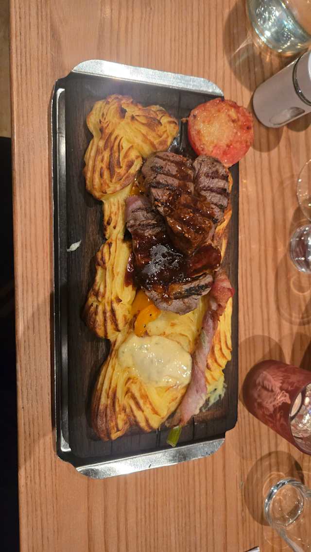 - Oxfilé, reninnanlår, kalvytterfilé, majskolv, grönsaker, klyftpotatis & 2 dipsåser (bearnaise & chèvrekräm)