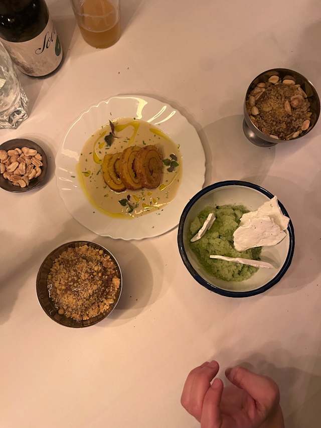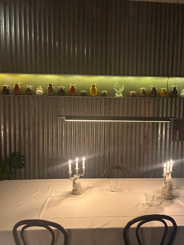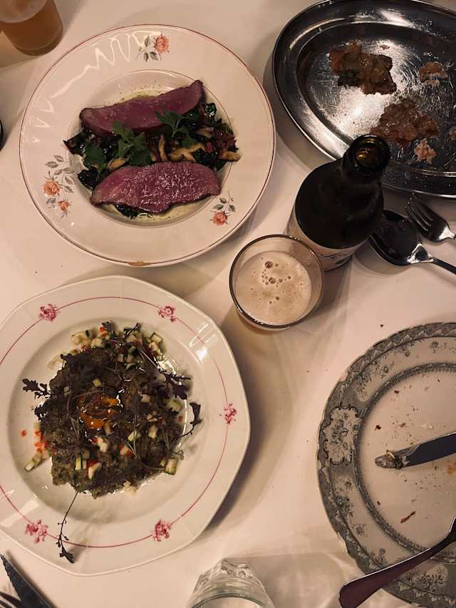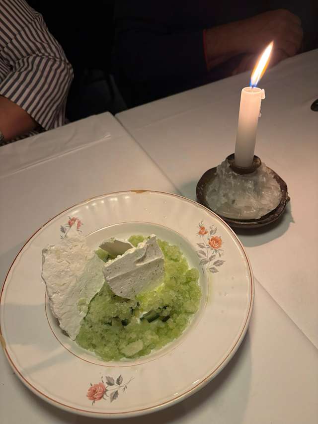 10/10The restaurant had a super cool vibe. It was cozy without being old fashioned. George was our waiter and pulled a stool up to our table to discuss the menu and order with was such a nice touch. Food was amazing and before dessert the chef came out to chat and recommend a dessert. It was also amazing, his own creation of cucumber over sorbet with meringue pieces on top. So refreshing and delicious. Great dinner and experience. Highly recommend!