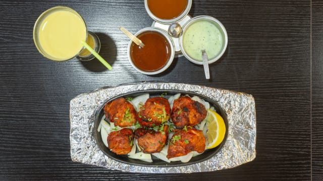 Pollastre desossat, rostit en tandoor amb especies tradicionals i salsa de menta amb iogurt