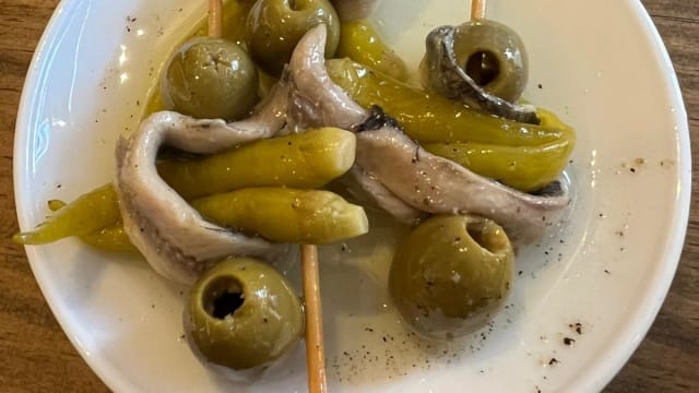 - Esqueixada de bacalao con tomate y salsa de oliva negra de aragón