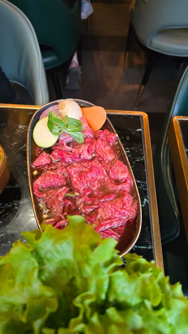 10/10+3It was an excellent experience! We ordered 2 plates of meat, not knowing that it already came with rice as well. So we also ordered Bimbimbap on a hot stone. Everything was excellent!!! At the end, the owner kept giving us soju shots, we left the restaurant with a big smile. 😁😁😁 The best korean resto ever!!! ❤️❤️❤️