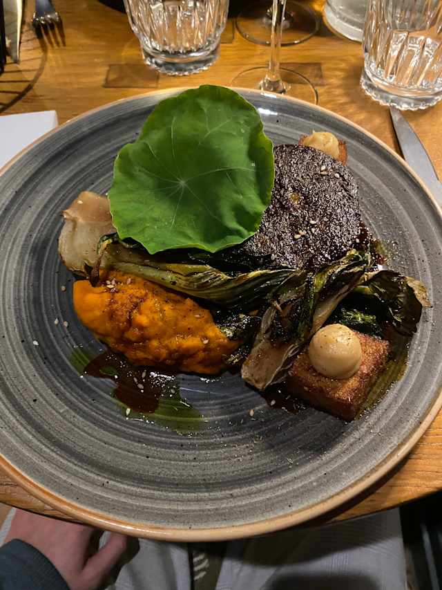 - #Entrecôte #300gr #Ecrasé de pommes de terre #Ail nouveau #Beurre blanc combava #Echalote confite #Ail en chemise #Condiment poireaux et curry rouge