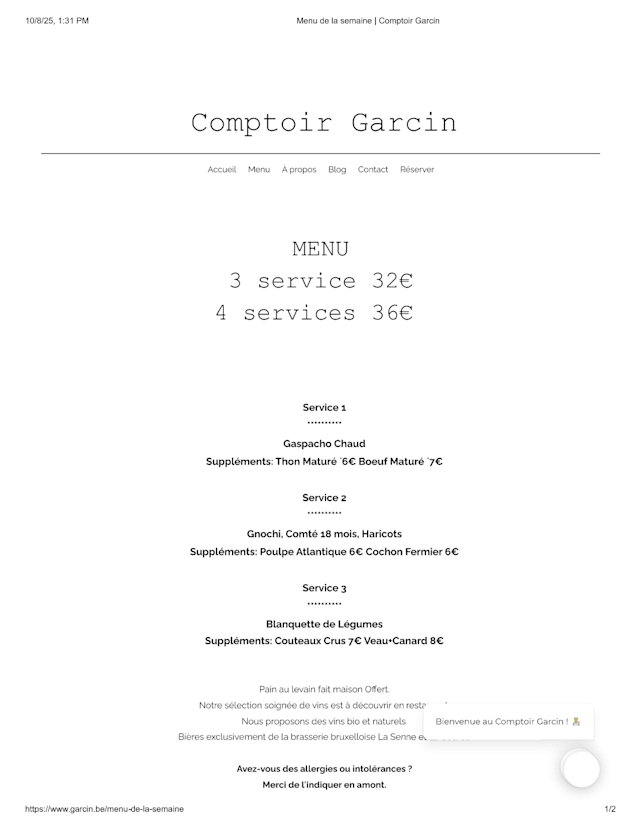 omptoir Garcin naît d'une passion, celle du chef Pierre Van Ransbeeck, amoureux de la bonne cuisine, des produits frais et des saveurs qui rendent heureux. Ancien analyste de données, il se consacre désormais à sa passion de la "vraie" cuisine maison.
