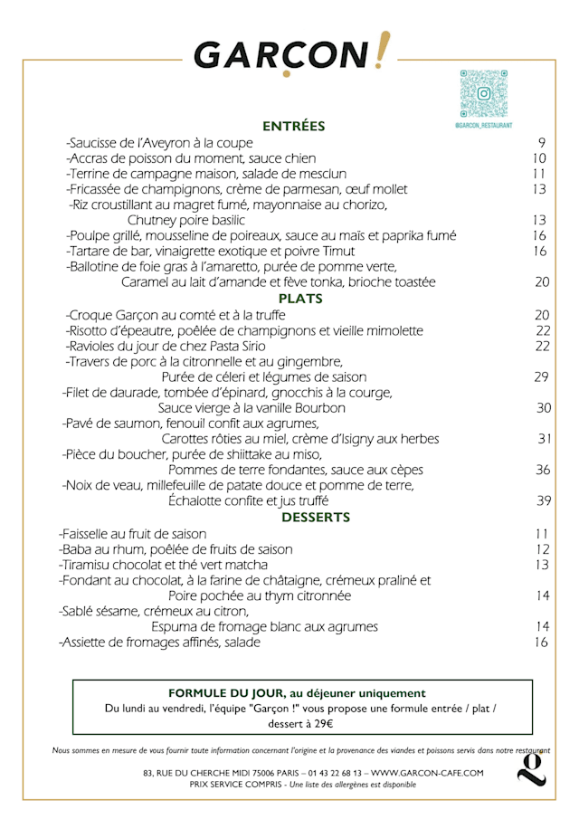 10/10Delicious food and friendly and attentive service made Garçon! a pleasing choice for dinner.