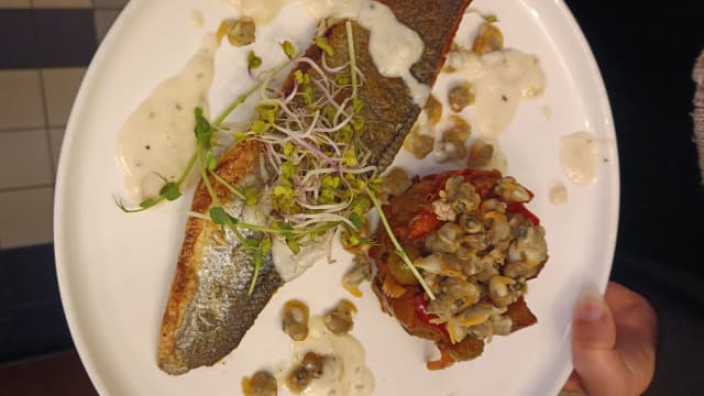 - Poulpe grillé, mousseline de poireaux, sauce au maïs et paprika fumé