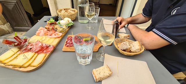 10/10We had a super evening, sitting outside this little wine bar. The choice of wines was extraordinary, so many available by the glass. We had a mixture of bruschetta and charcuterie all of which was really delicious. We were even given umbrellas when it started to rain! A lovely, friendly, relaxed, place for supper.