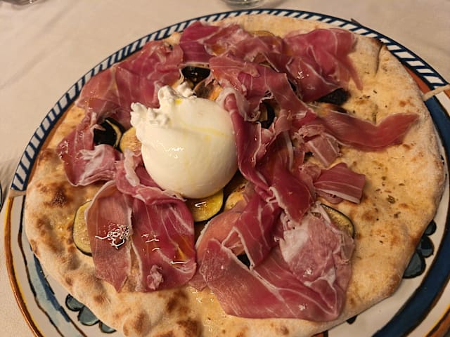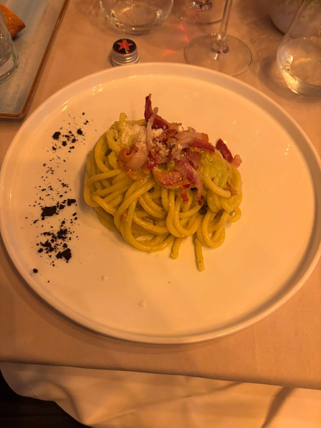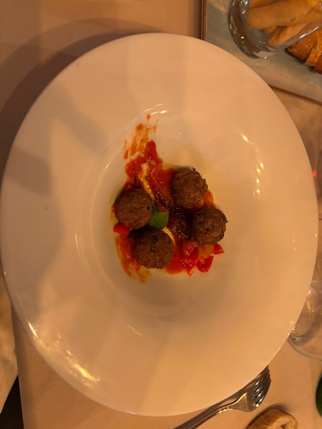 9.5/10A limited but delicious a la carte menu. We ate risotto, then baccala and very rare beef, plus stuffed peaches for dolci. Service was timely and very good. Waiter spoke enough English for us. Thank you for a lovely evening.