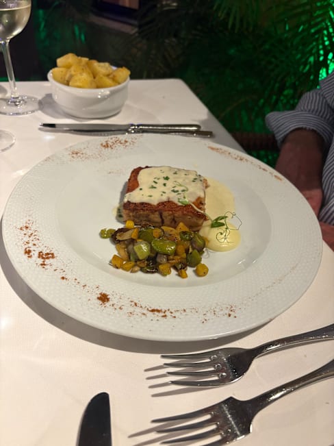 8.5/10Everything was excellent. The only slight criticism was that the pasta cooked at the table with truffle was cold.