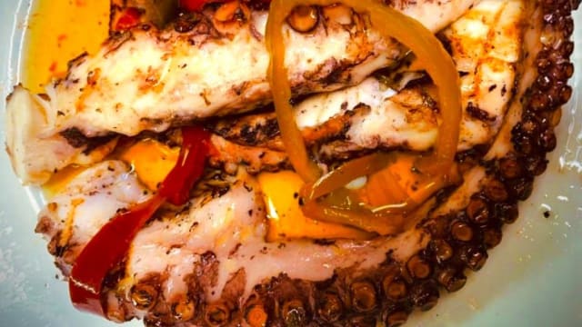 Polvo à galega em azeite, salsa e salpicado de pimentão
