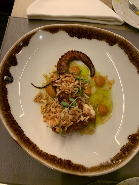 9.5/10The food was creative and delicious. Servers were very knowledge. Wine pairing was fantastic. The must have for the night, believe it or not, (hubby and I both agreed) was the carrot gnocchi dish which we ordered as an appetizer. The sea bass and lamb were both fantastic too. The fresh in house baked bread came with two homemade butters) the kind they serve at Michelin restaurants. And the olive oil was out of this world delicious. For desert, I got their famous orange semifrio which was white chocolate shaped like an orange with a soft meringue like something inside with an orange flavored something else inside of that. There was a small amount of sponge cake on the bottom that it sat on, and cookie crumble around it. My description is not doing it justice, it was special and unique and fantastically delicious. There was not one crumb left!