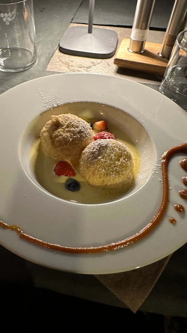 10/10Food is excellent. All meat and seafood are of very high quality, accompanied by very fresh cooked vegetables. Plenty of option of hamburger to meet the expectation of these very demanding kids. Service is amazing, we are with kids and we had all attentions we needed from all of them, especially the very kind manager. Located in a small lovely town that cars can enter and park in front of the restaurant. Easy to reach on our way from Bolzano to Trento. Octopus and maglialino were the best among these wonderful dishes.