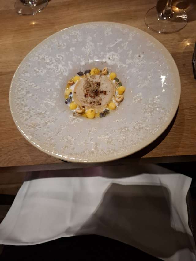 - Dungesnede coquille | truffel | knolselderij | 65° dooier | hazelnoot | beurre noisette