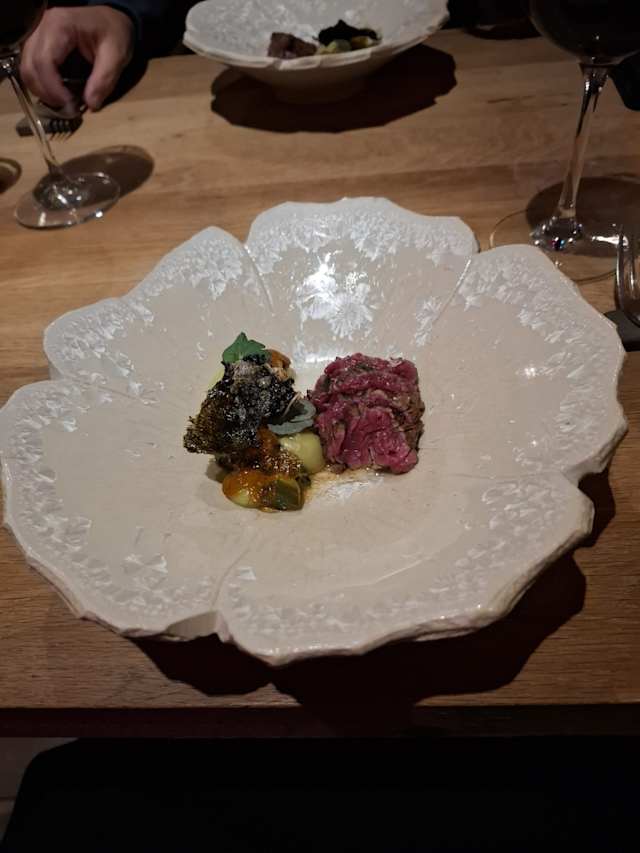 - Tartaar van rode biet | sumak & olijf crumble | crème van geitenkaas | jeneverbes