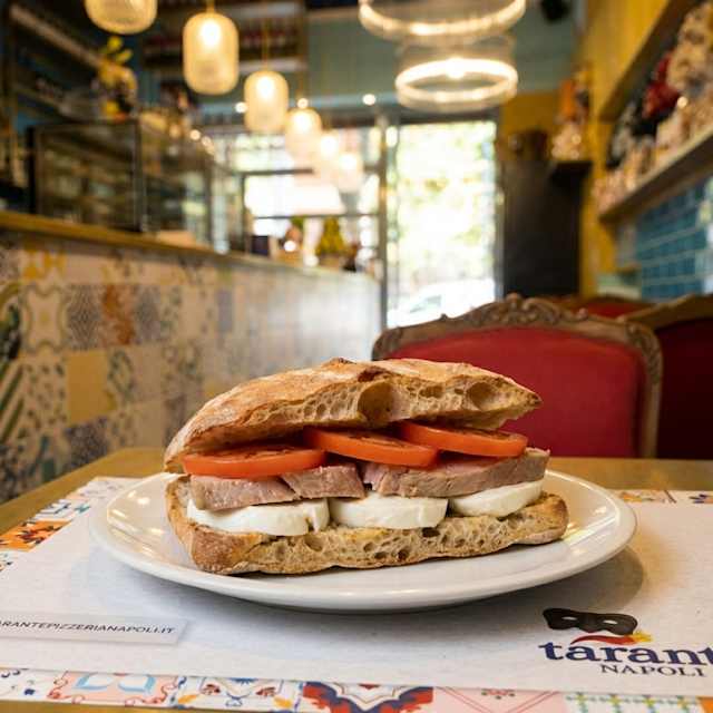 - Pane casereccio, mozzarella di bufala, filetti di tonno di cetara, pomodoro fresco