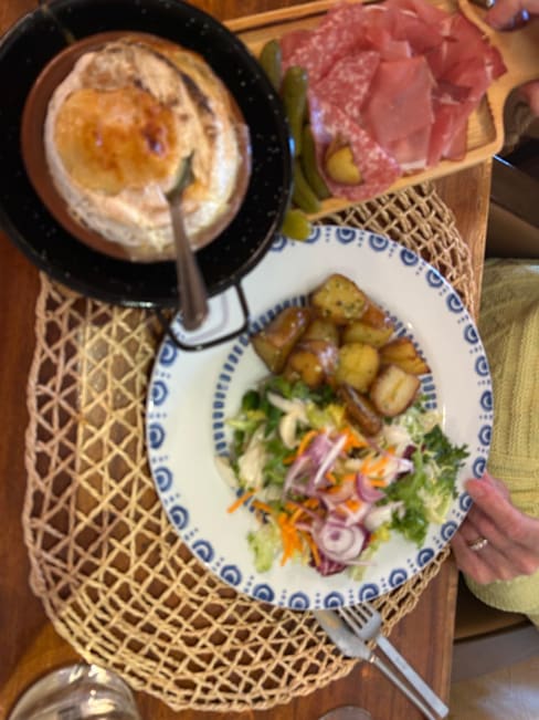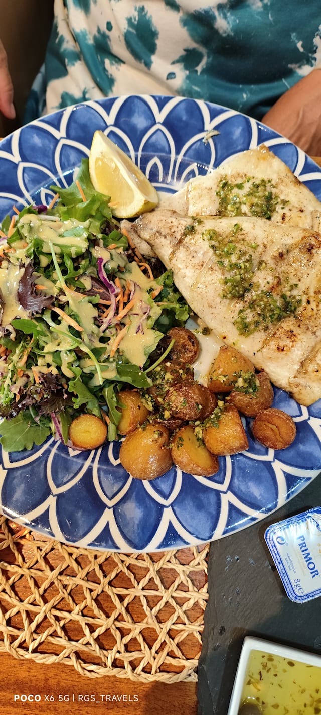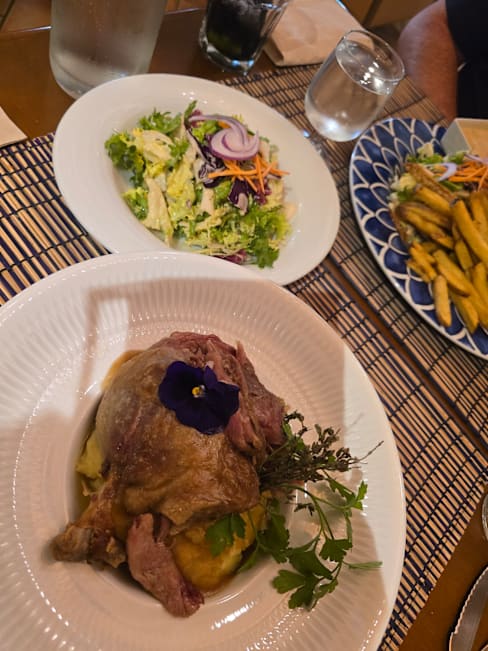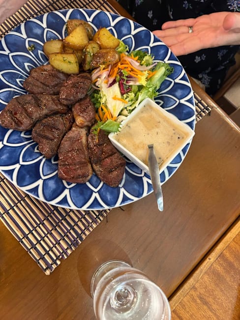 7/10It’s a beautiful atmospheric restaurant and staff are pleasant but got my husband’s main course wrong, however it was good. Unfortunately my main course of turkey was tough & lacked flavour, it was served with pasta which also lacked flavour. The turkey was smothered in a flavourless mushroom sauce. The herring starter was lovely and the covert. We had a lovely red wine. We were disappointed but we may consider a second visit in the Autumn.