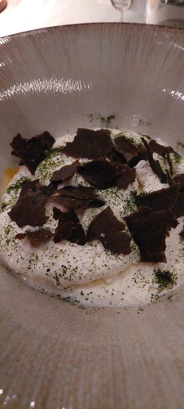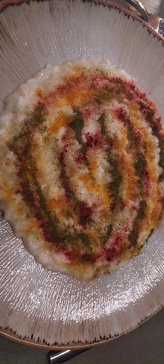 - Risotto mantecato con burro acido, parmigiano, limone nero e ristretto syrah