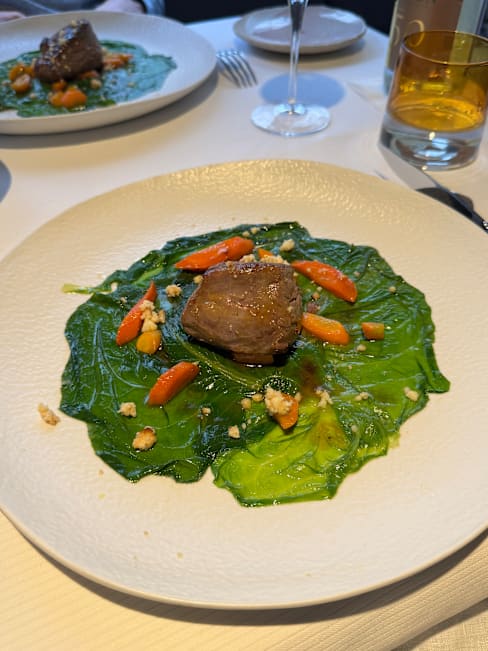 8.5/10The food and ambiance were consistent with a one star Michelin experience, meaning very enjoyable, even if the staff seemed a bit pressured at times. Lovely wine list. Our evening was marred by two glitches: first, 2 of the dishes that I ordered from the menu were not available, so 2 of my 3 first choices were not possible. Second, my hat went missing in the cloakroom ( the beret was stuffed in my jacket sleeve); while they looked diligently, no offer was made to make up for the loss (a copy of the chef’s book or some other token of apology would have been appropriate). A nice meal, but with some definite minuses.