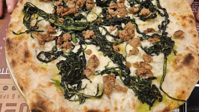 Fior di latte, friarielli, salsiccia nostrana, provola affumicata, basilico fresco, olio evo