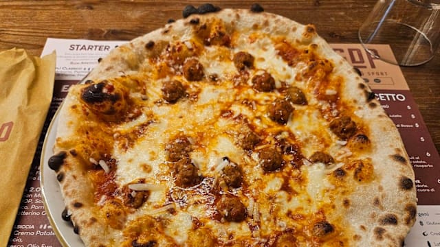 Fior di latte, crema di patate, patate, salsiccia, rosmarino fresco, olio evo