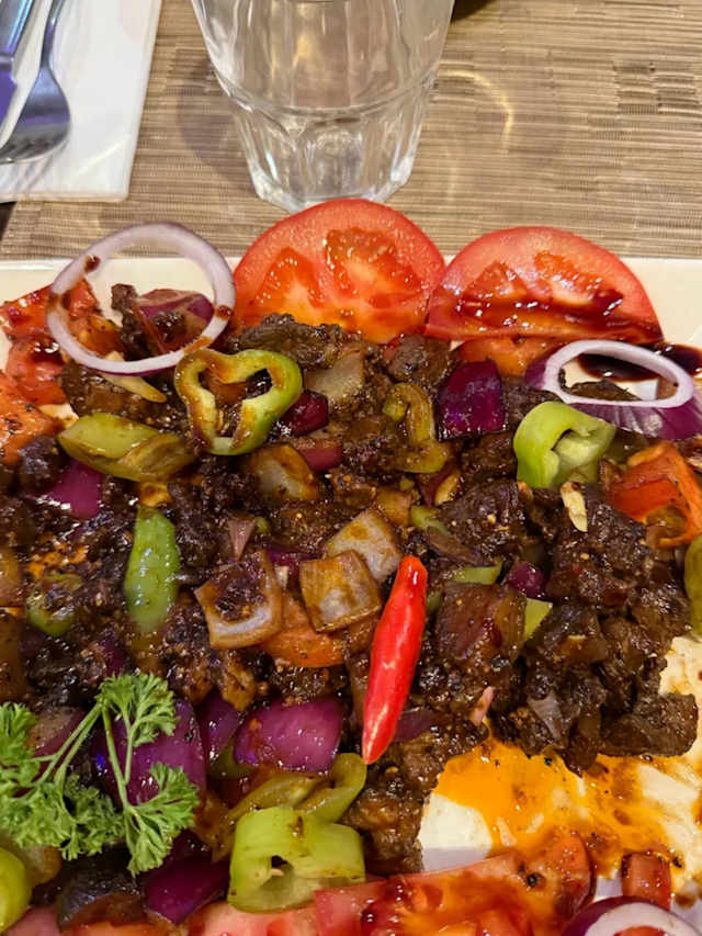 - Bœuf strips, onion, poivron-cubanelle vert, soy sauce, épices Sri Lankaises