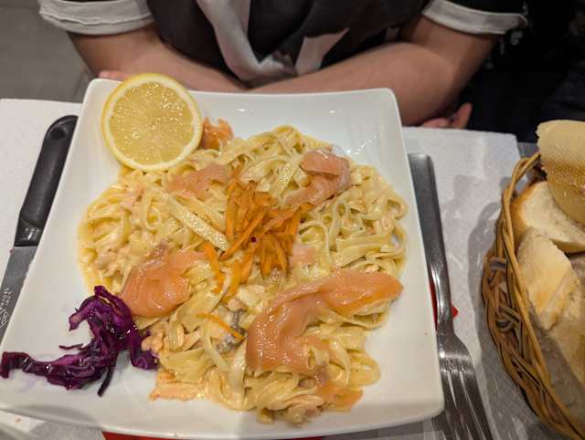 - Sauce tomate, mozzarella, saumon, crème fraiche, citron