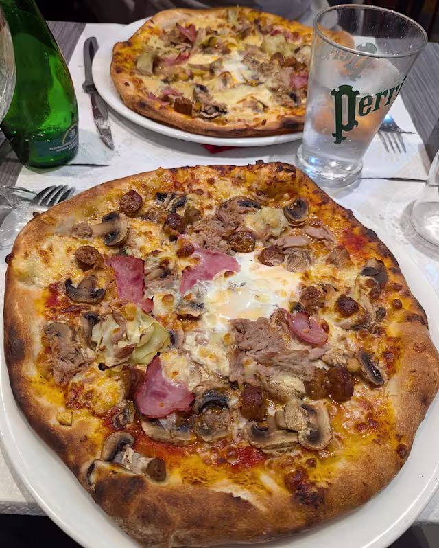 - Sauce tomate, mozzarella, champignons, jambon, artichaut, olives