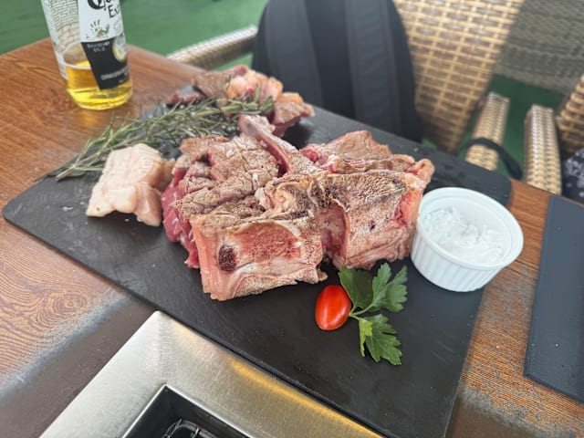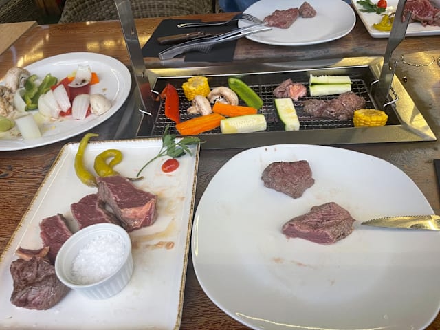 7.5/10Steak was amazing, kids loved cooking meat at table and reasonably priced. I still think the chicken should come out cooked especially with mixed kebab as you have raw chicken on same stick as steak and peppers, I get the cooking of the steak to how you want it cooked but chicken has to be cooked no matter what. Also think chips and steak sauces should come out 5 mins after meat, chips were cold by time we cooked meat lol , service was slow too.